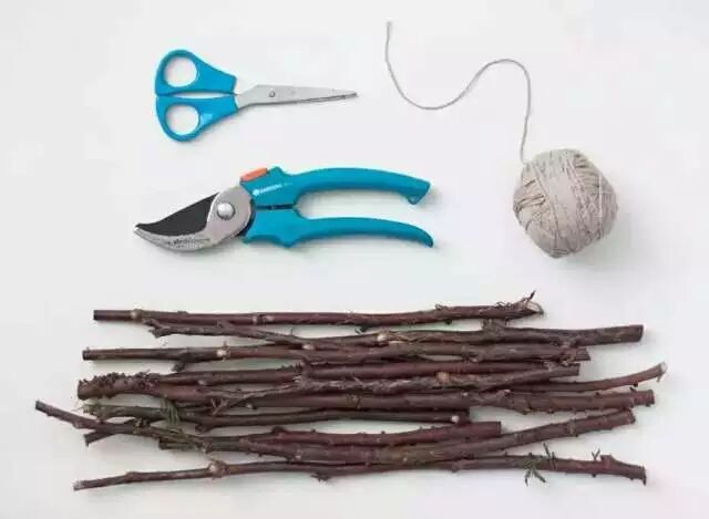 捡来一小捆树枝,准备剪刀,毛线
