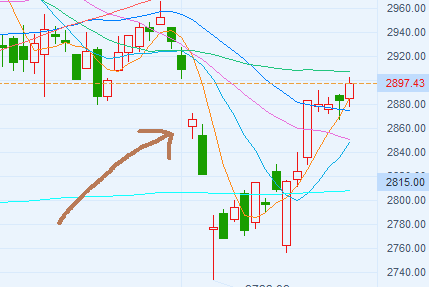 上一次类似的情况出现在8月2日。当时双方在上海谈的还可以,约定好9月继续谈。万万没想到,金毛直接一个推就是要加税,然后大A股被连砍三刀,分别跌了大约2%,1.5%,1.5%。箭头所指的位置就是上证指数8月2日的K线。大概是从2900点不到跌到了2700点,然后开始反弹。说起来也挺巧的,周五收盘的点位正好和8月1日差不多。