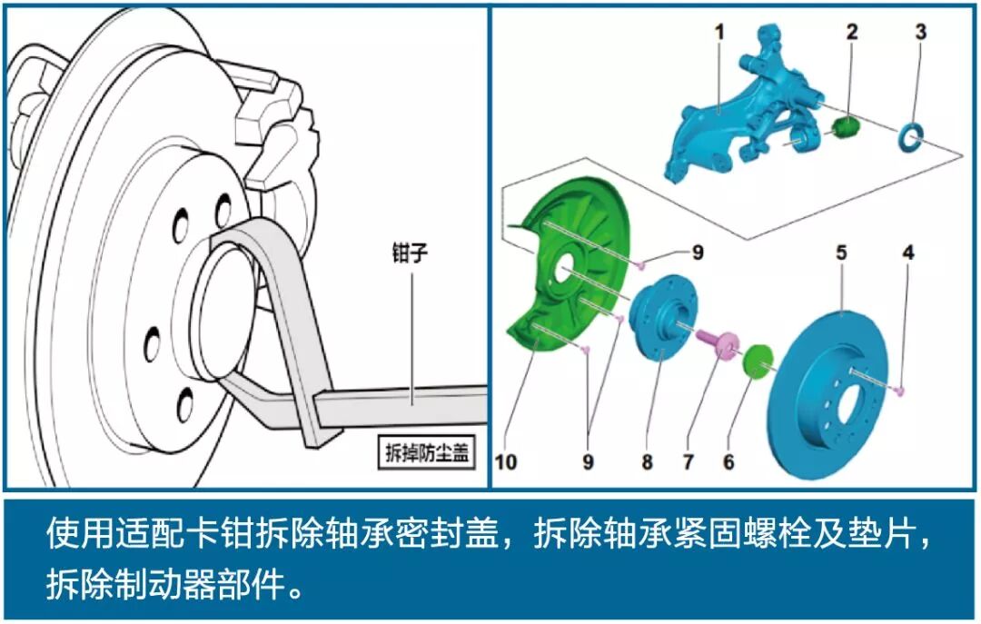 注意事项:严格按照车型维修手册对轴承螺栓紧固,安装时确保安装轴清洁。不要遗忘调整垫片(如果有的话),否则会产生其他连带故障。
