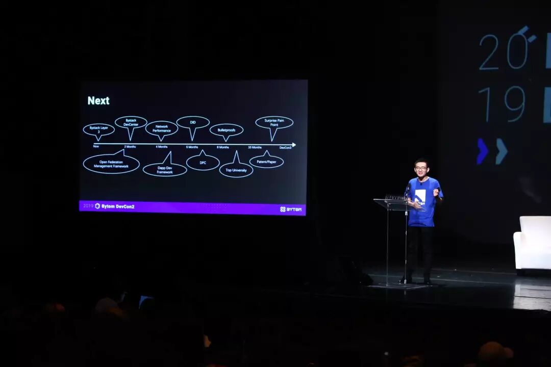 会上,James公布了比原链未来一年的路线图。Bystack 将开放BaaS平台,推出开发者中心以及Bystack去中心化身份(DID)。同时,Bystack将持续改善核心数据层和网络协议,推出BBFT共识2.0和迭代和Bytom 1.2.0的升级。基于一主多侧架构的OFMF(开放联邦管理框架)、DApp开放框架、去中心化个人信用(DPC)解决方案也会陆续推出。