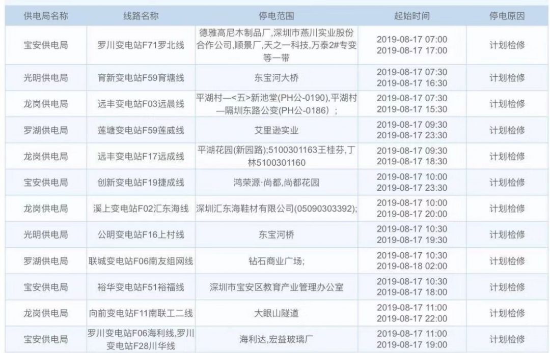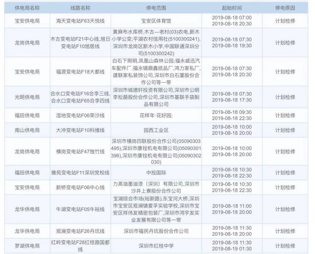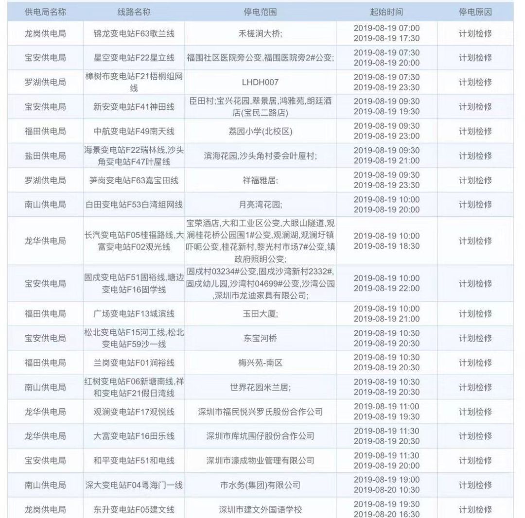 深圳这些地方计划停电!