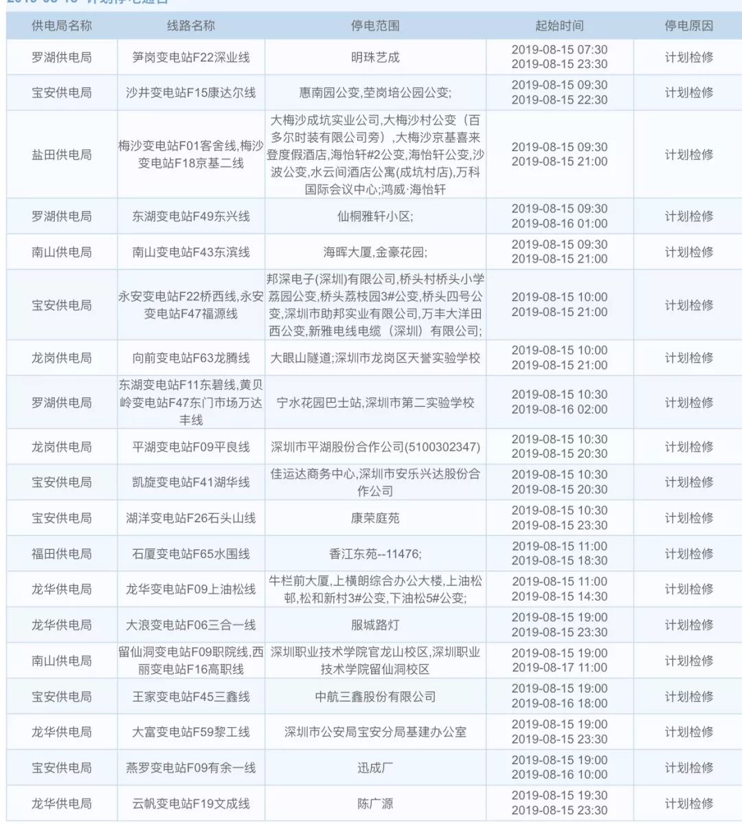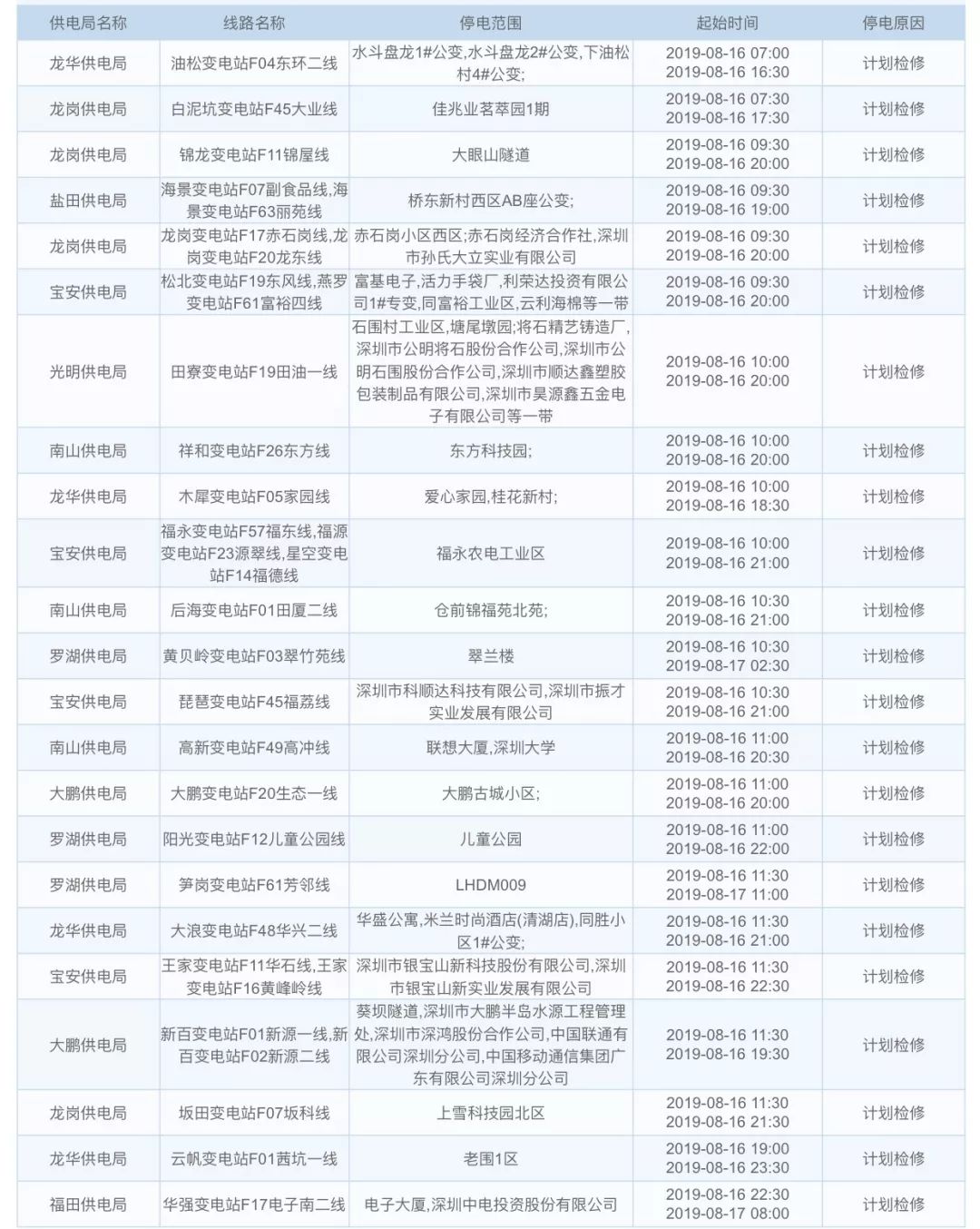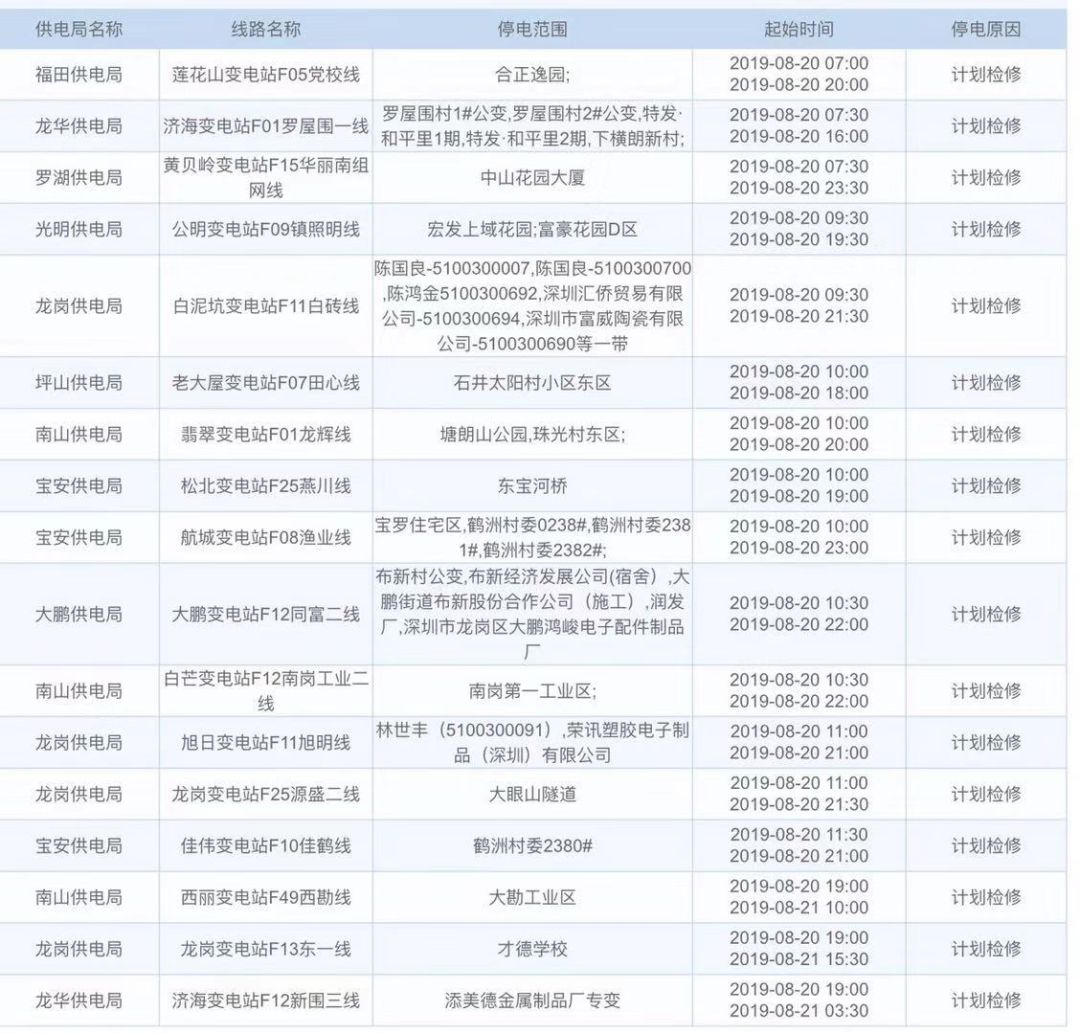 深圳这些地方计划停电!