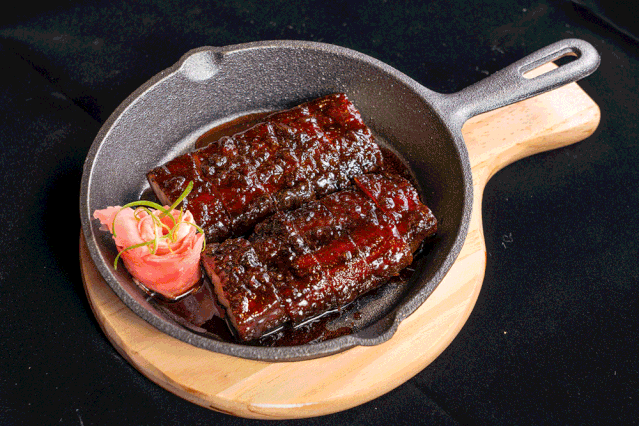 港式烧味做的好不好,看看叉烧就知道。荟盈的焦糖脆皮黑叉烧,功夫下的非常足,经过数小时的烹调,叉烧上多余的油脂都被炼去,肉质紧嫩,外皮既有焦糖的香甜,又有油脂的饱满口感,一整块叉烧在嘴巴里演奏一出美妙的交响乐。