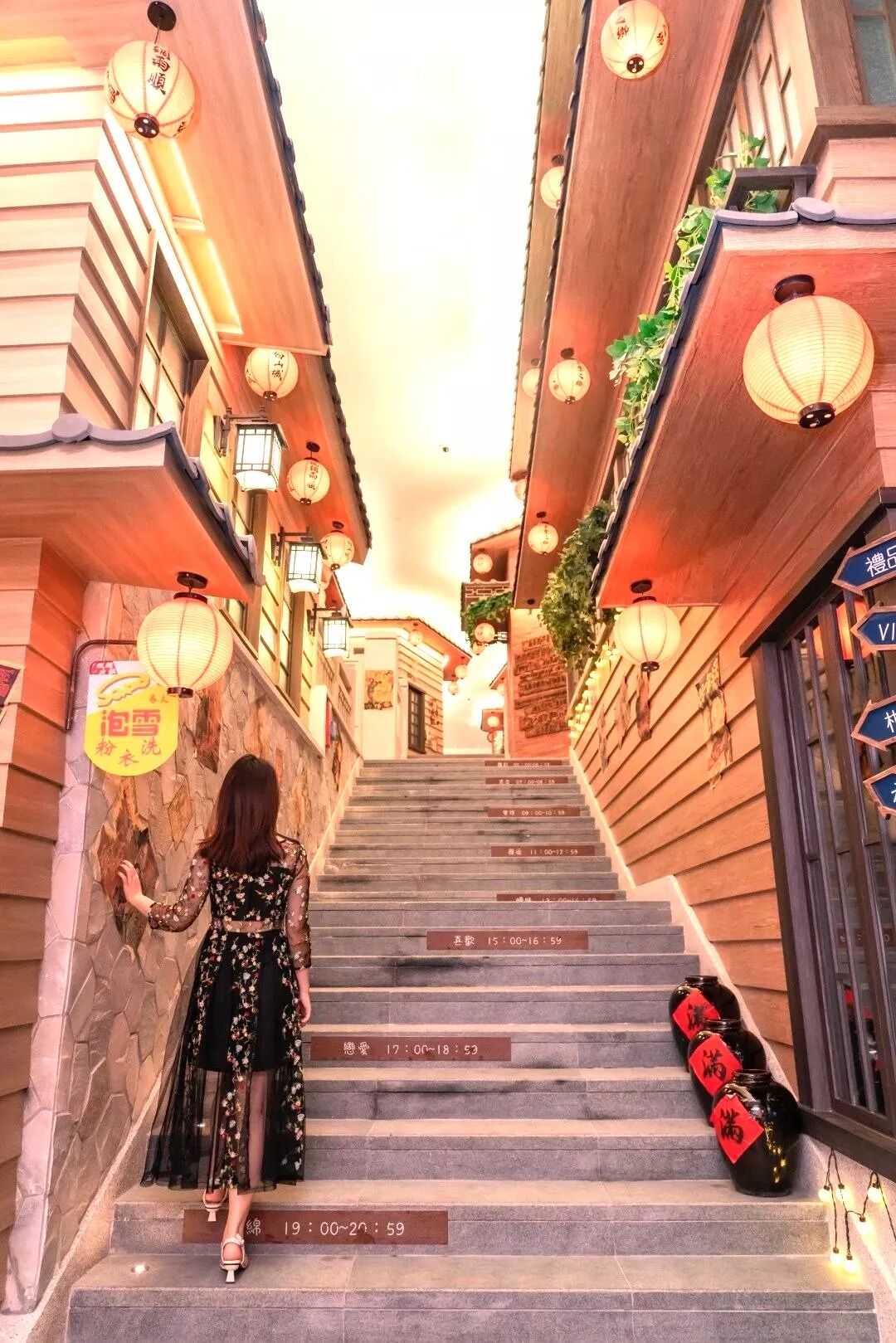 以九份山城为主题,还原旧日时光,老街、老店、老集市原滋原味,年代感、文艺感十足,转角处更有宽敞阶梯,让你一秒来到《千与千寻》。