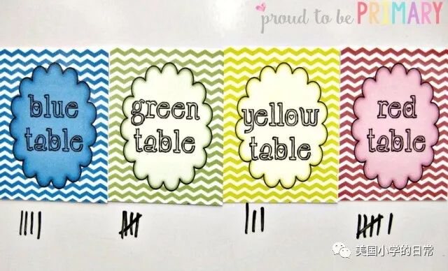 接下来是小组管理。我们班的孩子四个人是一组,每组用一种颜色代表。在学生做功课时,我会给小组分数: