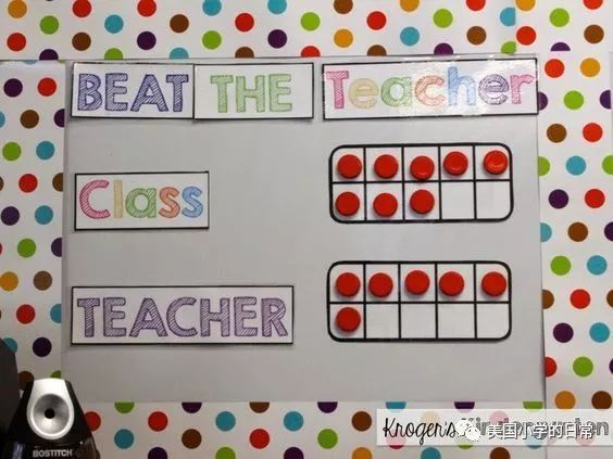 还有一个很常用的全班管理方法是学生和老师比赛。如果全班同学表现好,学生得到一分,如果学生表现不好,老师就得到一分。到周五的时候,如果学生赢了,他们可以得到奖励,比如一起看个电影。如果老师赢了,他们要失去5分钟的课间活动时间。