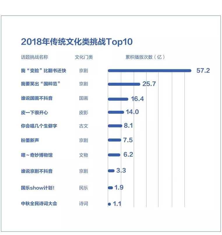 融合越界、复调交响,短视频对传播时空的重构与文化容量的扩充,使其为中国文化的创新传播与跨文化传播提供了诸多可能。街舞、嘻哈、国风音乐、鬼畜、动漫类短视频,脑洞与魔性并生,模仿与复制同行;京剧、昆曲、汉服、功夫、书法、水墨画、陶艺等传统文化以一种新旧交融的语法释放自身的短视频魔力,影响深广。抖音相继推出“四个一计划”、“传统文化千人传承计划”、“国乐Show计划”和“非遗合伙人计划”,致力于中国传统文化的创新性发展与创新性传播。