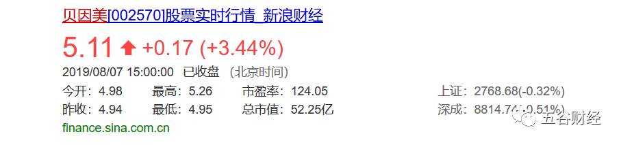 截止2019年8月7日收盘,贝因美的股价在5.11元/股,上涨3.44%;粗略计算一下,恒天然此次计划减持股票的市值在5225万元左右。