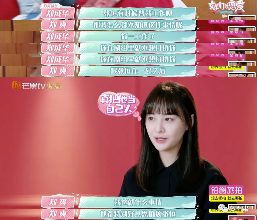 - 转载或者合作请联系 mszhangziyan@foxmail.com 郑爽自从跟新男友张恒有恋情之后,看起来感情趋向于稳定,塘主斌斌也早就成了前尘往事。然而郑爽和张恒上《女儿们的恋爱》秀恩爱秀到第三
