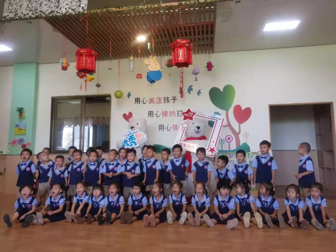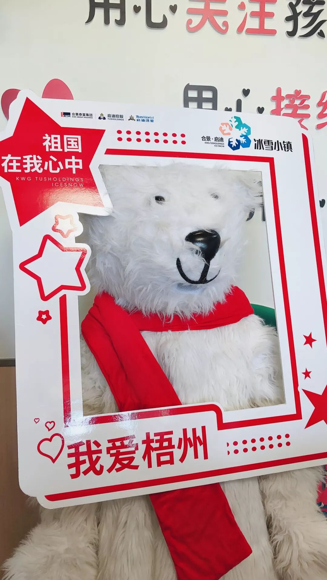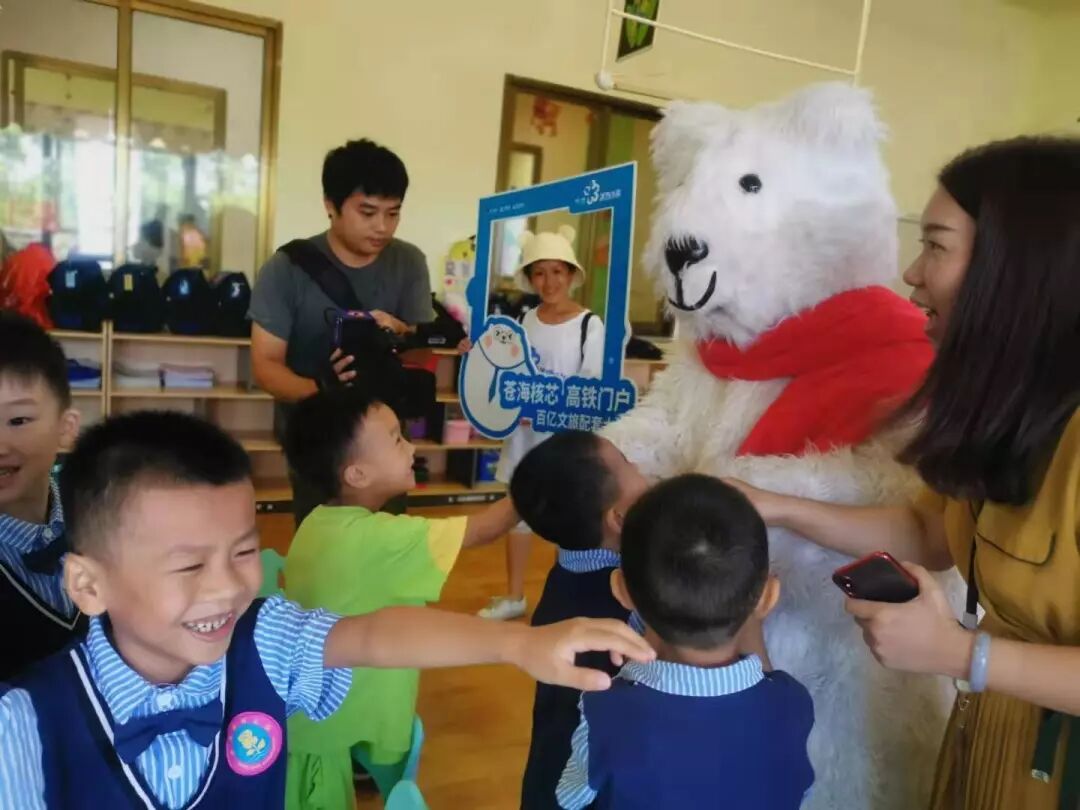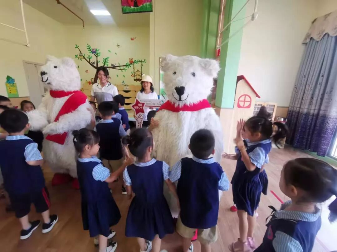 天真可爱的小朋友们给“熊小冰”一个爱的“宝宝”。