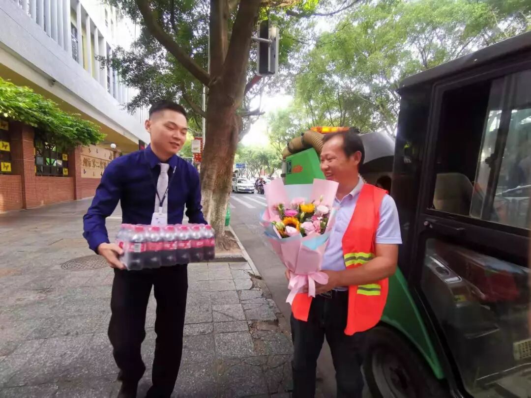 “派冰”活动的第一站,便是在清晨,为旺城环卫站的环卫工人们送上一份清凉,一份祝福,支持环卫工人的工作,让梧州这个城市面貌更加整洁美丽。