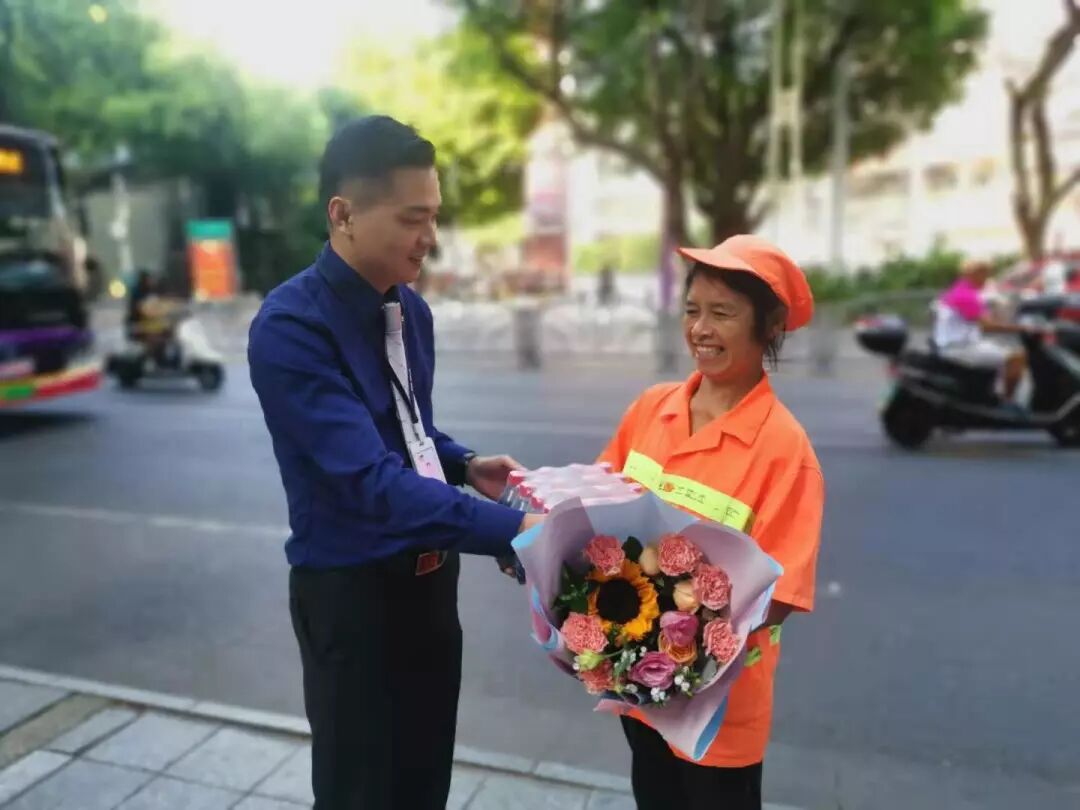 鲜花配美人,环卫阿姨你就是这个城市里最美丽可爱的人~