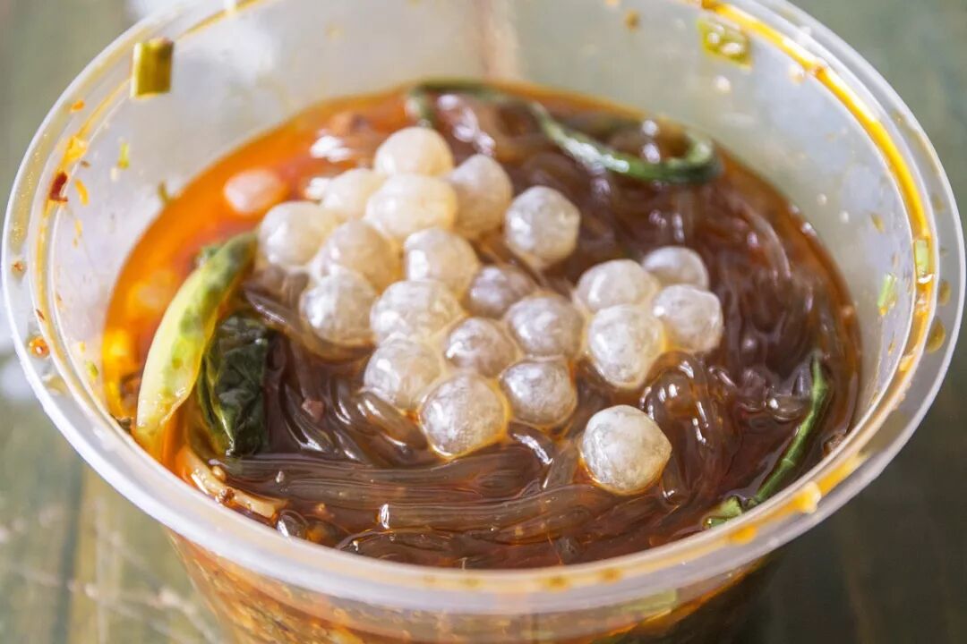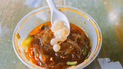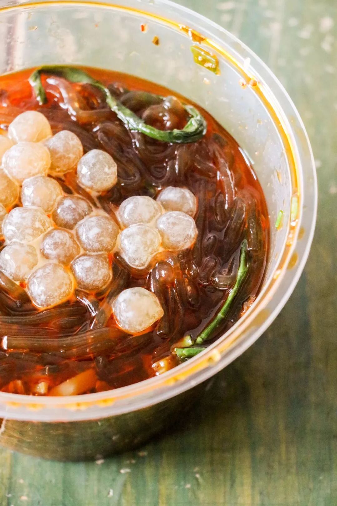 酸辣粉的酸味太重完全遮盖了奶茶的味道,偶尔吃到的略带甜味的珍珠与酸辣粉也不搭。