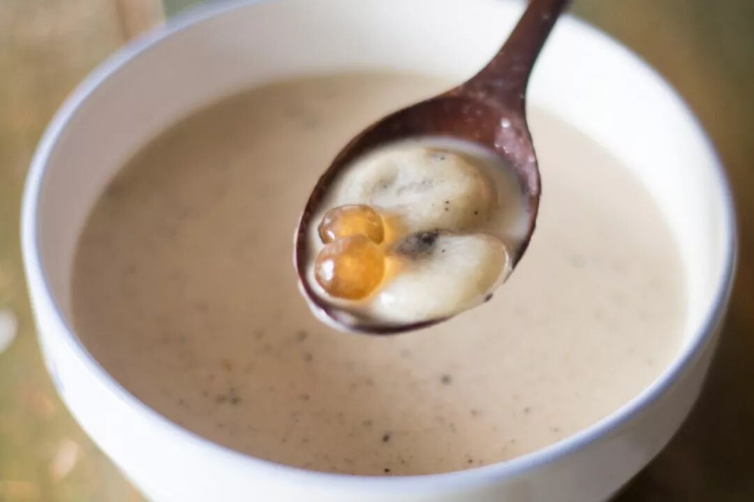 加入珍珠后味道不会违和,但是面条太滑基本不能实现一起吃下,最后都剩在碗底,显得珍珠有些画蛇添足,还是好好吃面吧。