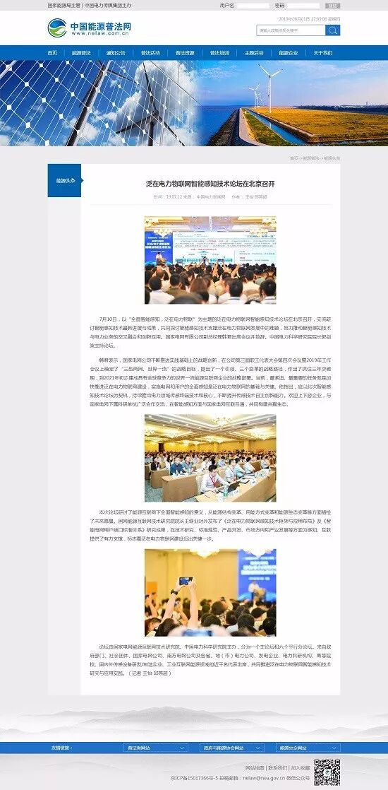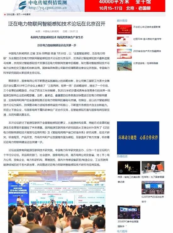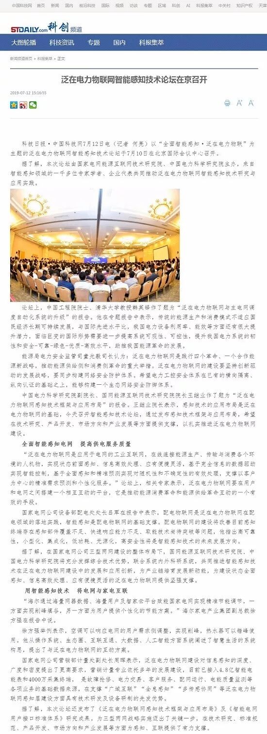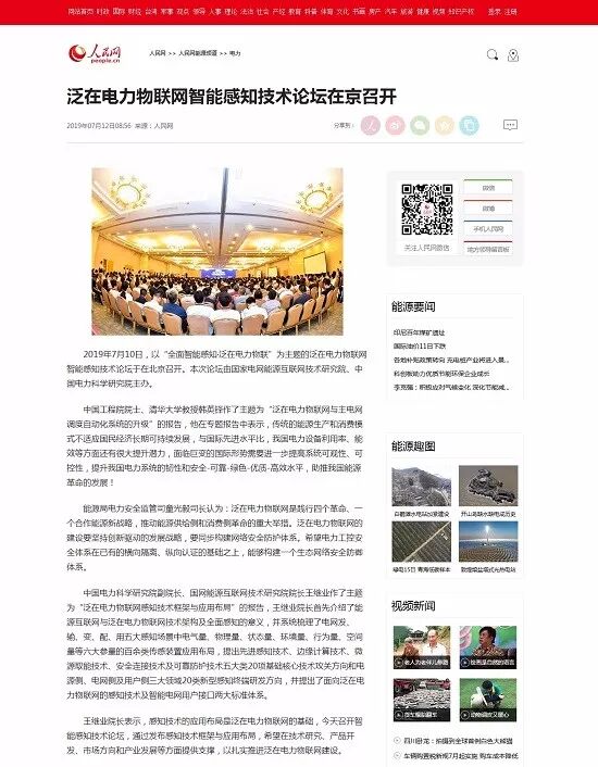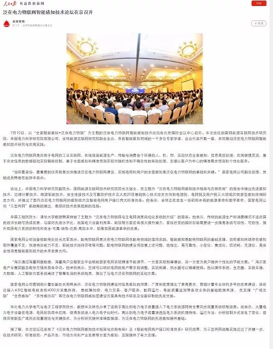 近日,以“全面智能感知,泛在电力物联”为主题的泛在电力物联网智能感知技术论坛在京举行。来自政府部门、社会团体、国家电网公司、南方电网公司及各省、地(市)电力公司、发电企业、电力科研机构、高等院校、国内外传感设备研发/制造企业、工业互联网能源领域的近千名嘉宾出席论坛,论坛引起了社会广泛关注,新华社、人民网、光明日报、科技日报、国家电网报等二十余家媒体纷纷报道论坛盛况。