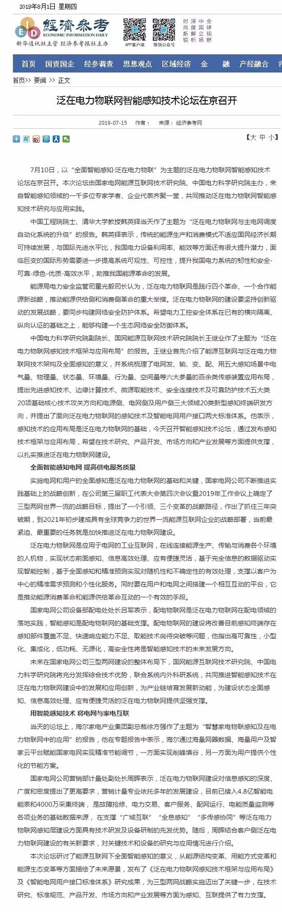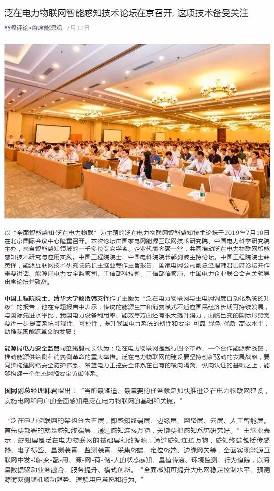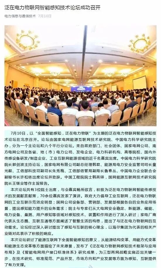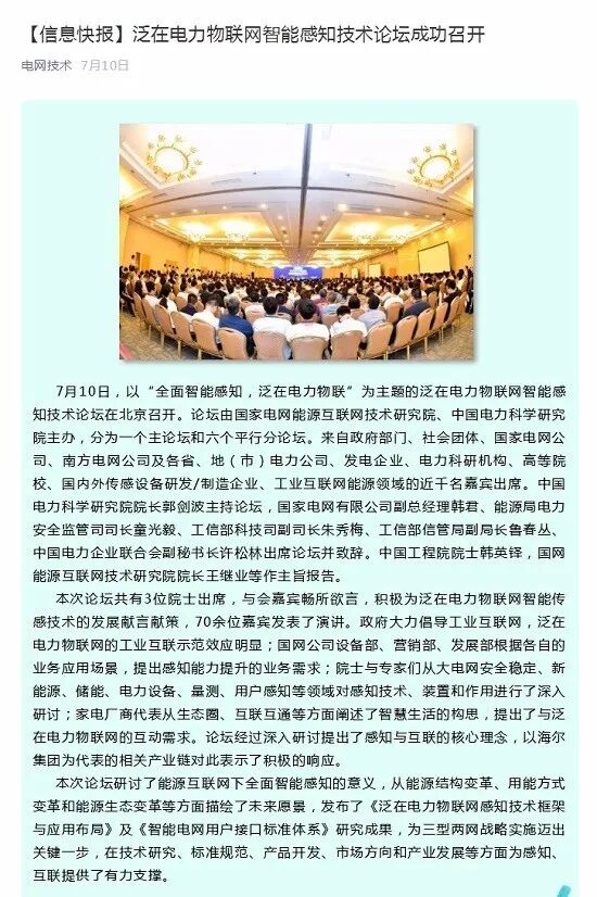 - 社会广泛关注泛在电力物联网智能感知技术论坛
