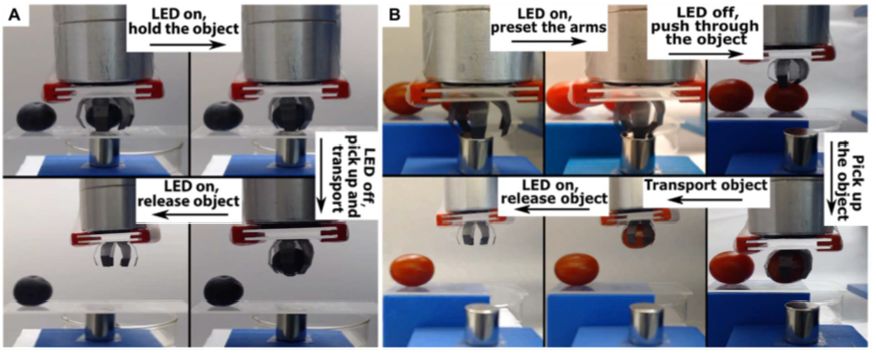 新性能、新设计、新材料的快速发展,软体机器人的应用领域得以迅速扩大,包括生物医学和外科手术工具、辅助医疗设备、组织工程以及航空航天等。形状记忆聚合物(SMP)的临时形状可以固定而不需连续的外部刺激,同时永久形状可编程,已成为制造软体机器人的重要材料。然而经典的单向SMP制造的软体机器人缺少重构性或可循环性。为了执行复杂的功能和在如体内和太空等远程环境中的应用,软体机器人要具有按顺序的和可编程的响应性。