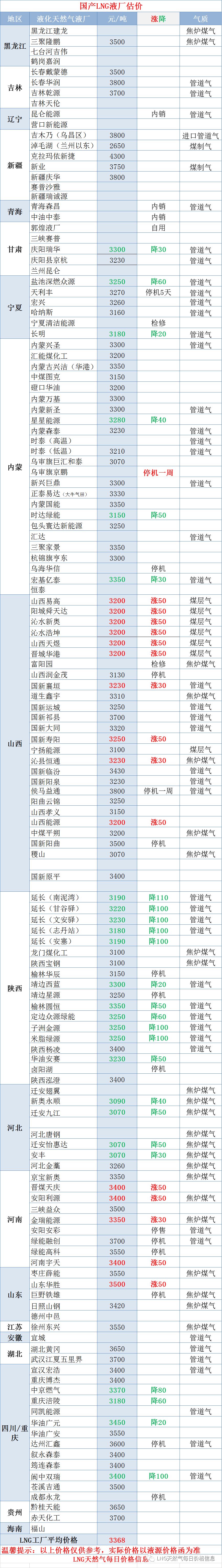 - 【8月8日】今日LNG液化天然气大面积降价涨价,至少28家降价20-110元/吨,15家涨价30-50元/吨!