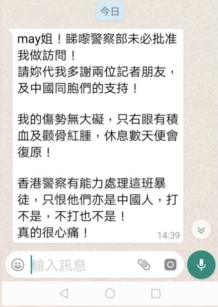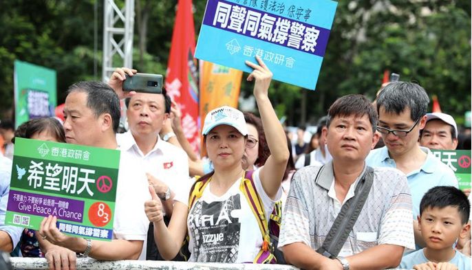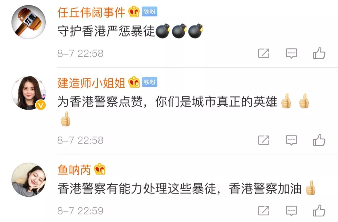 “香港警察加油!对暴徒无须客气,严正执法!”