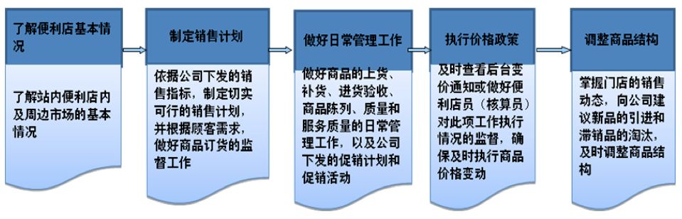 5. 负责加油站的各项基础管理工作。负责组织站务会议;监督检查计量员做好油品的进、销、存和数质量管理;监督检查便利店主管做好非油品的进、销、存和数质量管理;监督检查核算员做好加油站的资产、现金、费用、销售业务等各项管理。