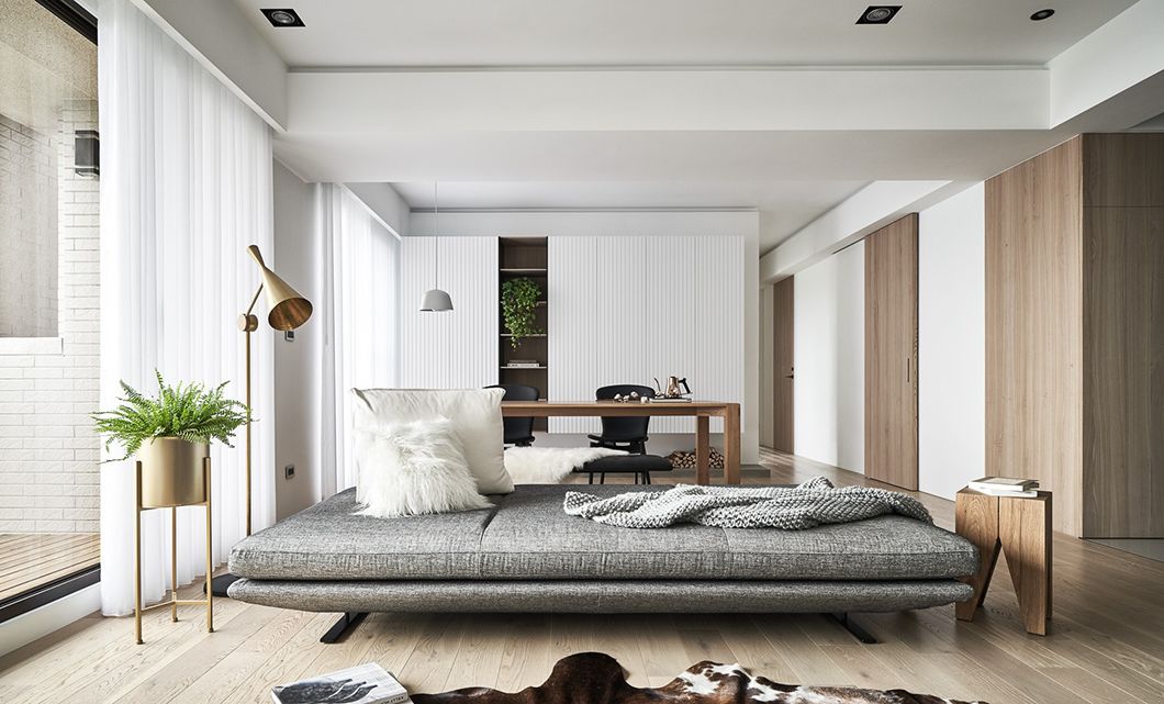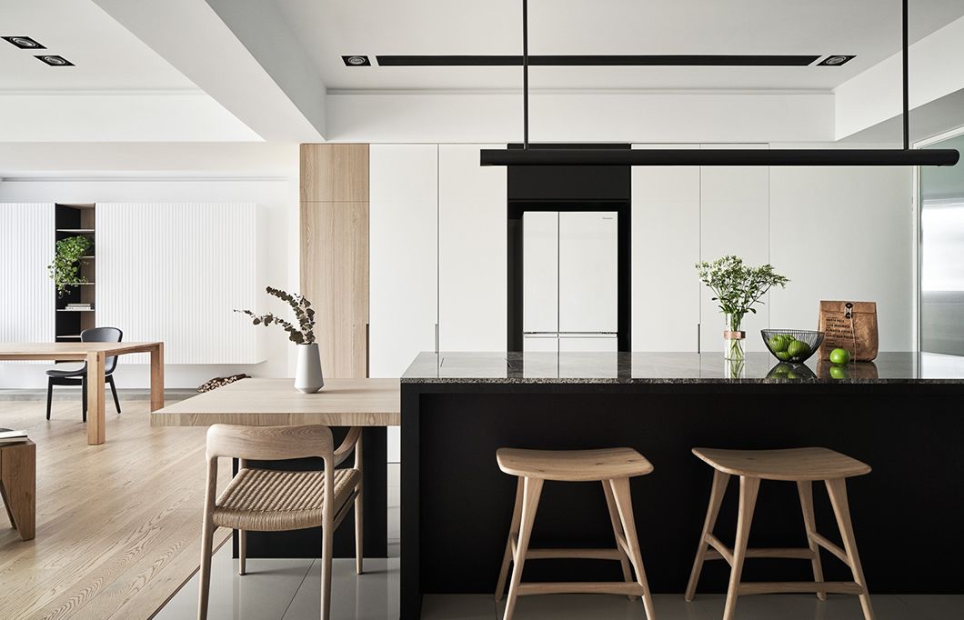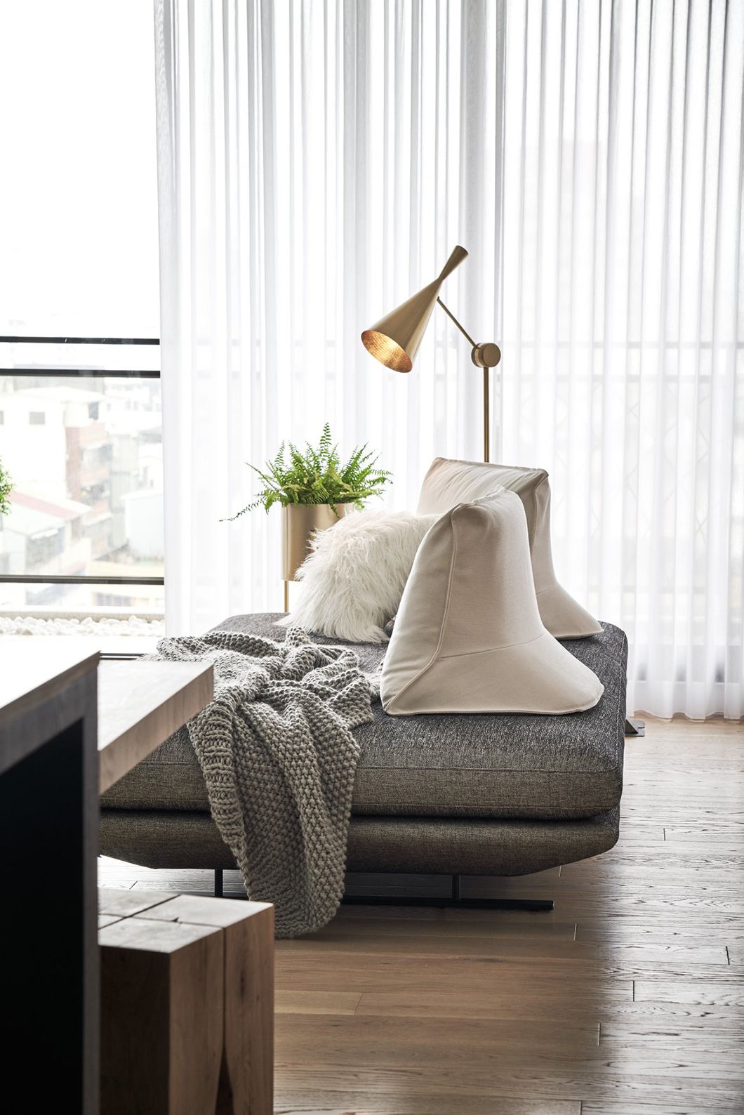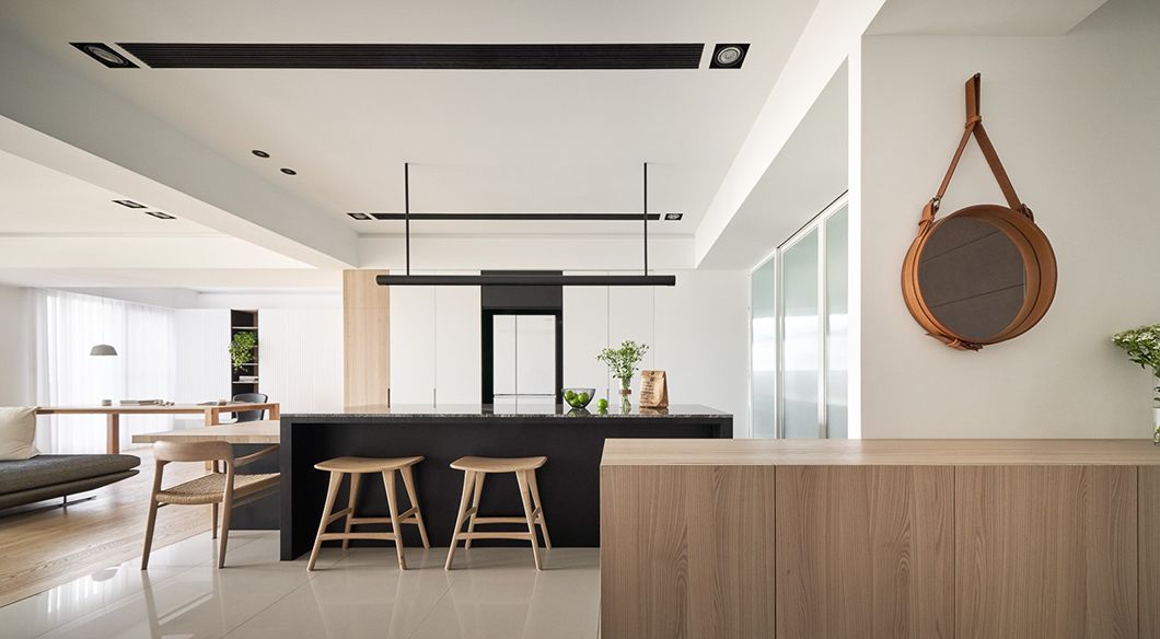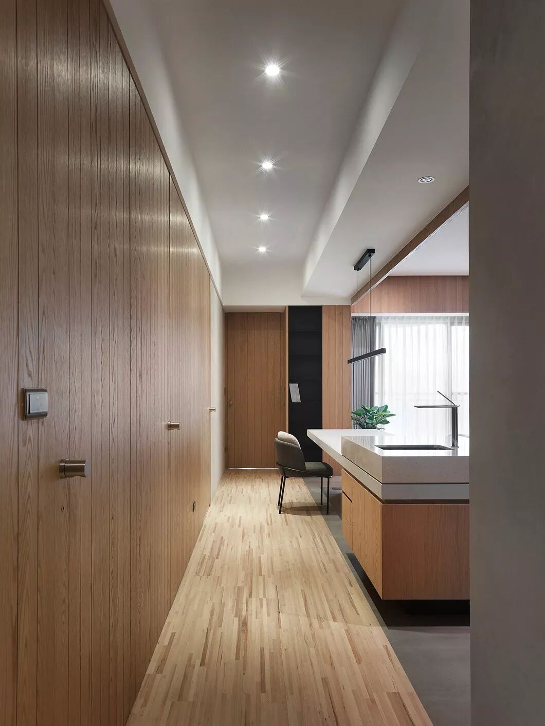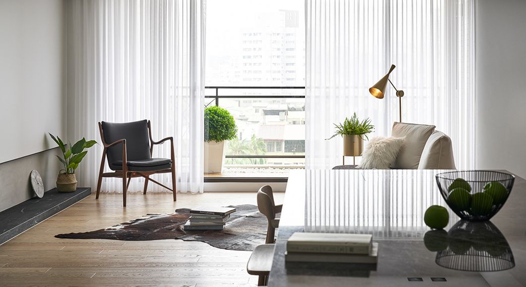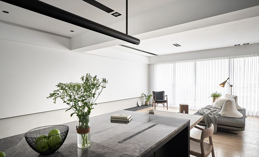 公领域开放通透之动线延伸至阳台,延展出介于室内外的共存空间,让阳光的温度落入整个公领域,光的穿透张力,成为公共区域定调空间的一个重要元素。