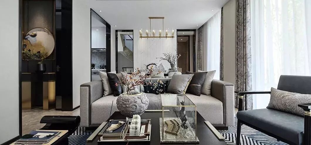 其开放式的公共场域赋予空间流畅的动线,公共场域一轴线的设计除了延伸视觉还为业主打造一个阅读疗愈身心的小天地。