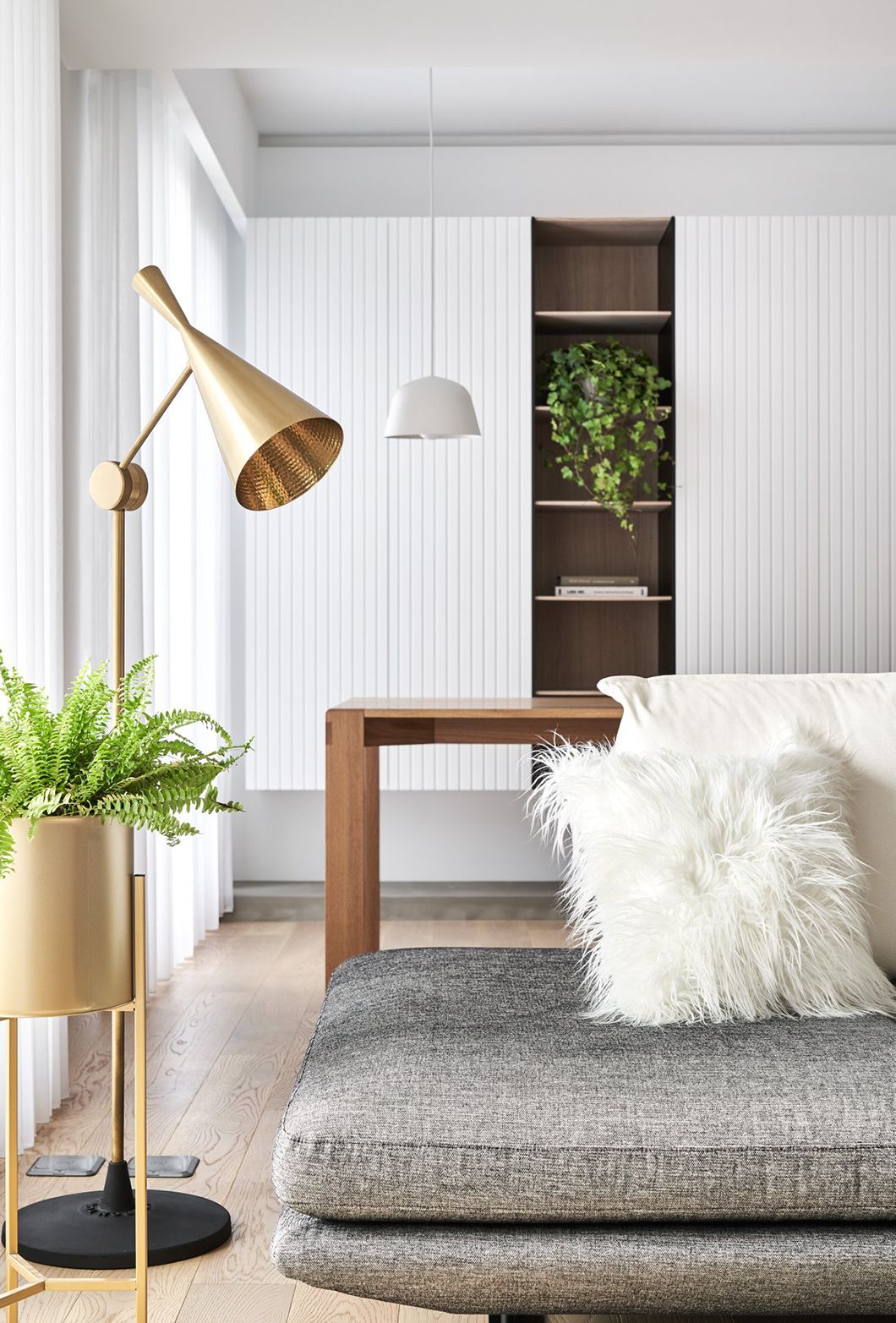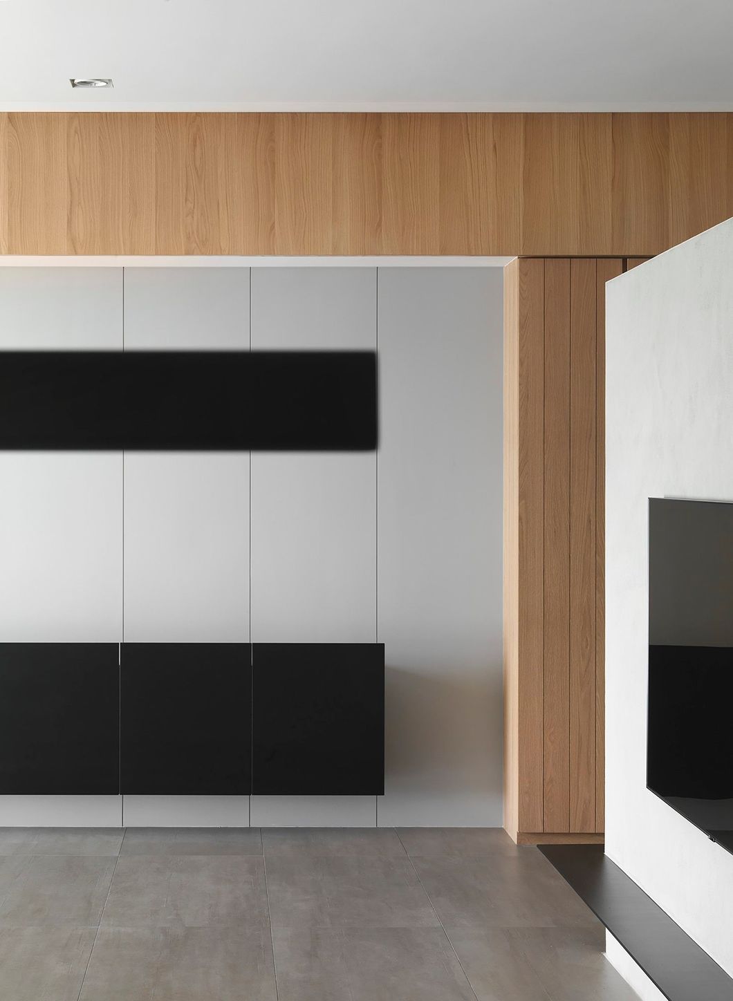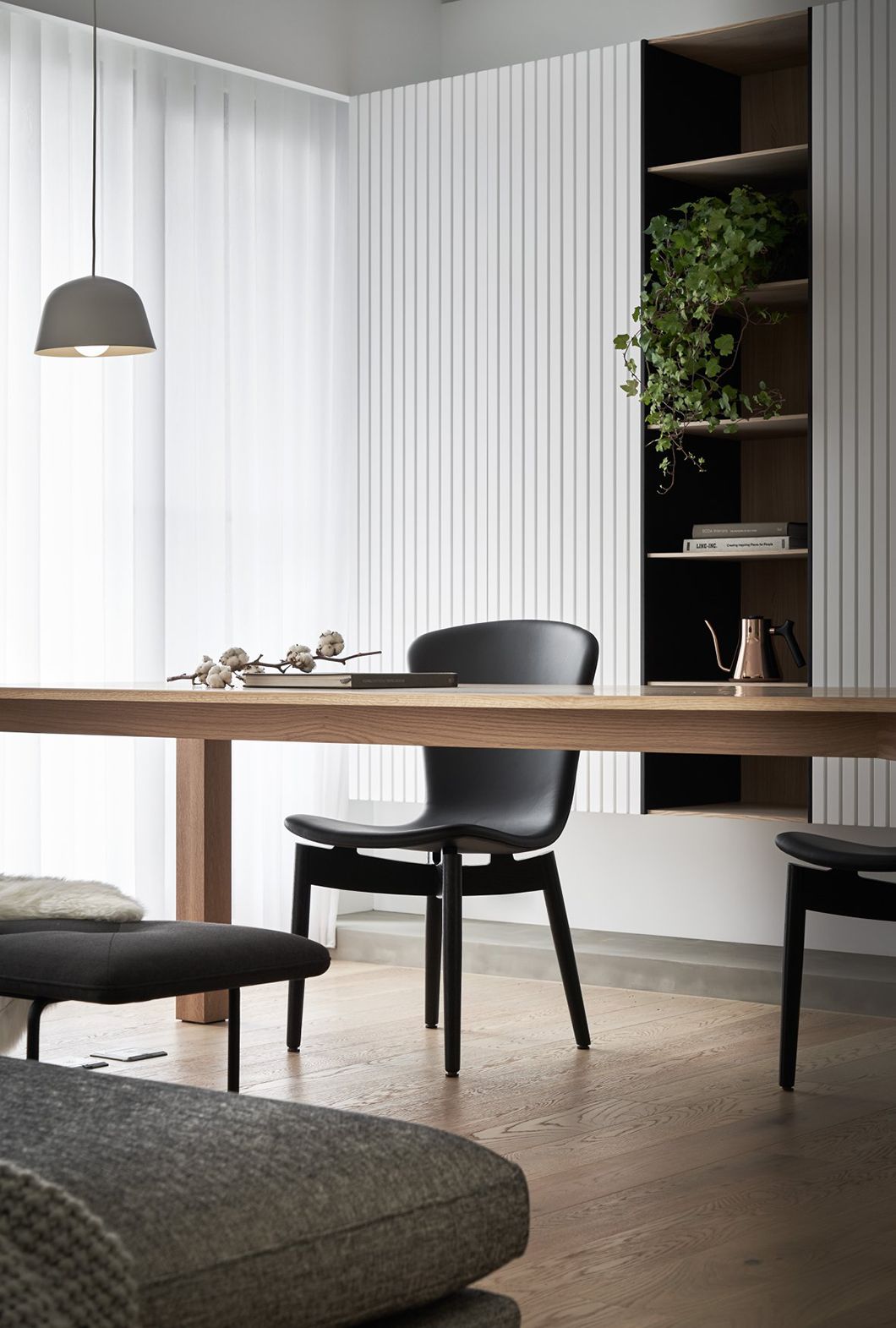灰色与木质的结合,使得空间通透明亮,简洁的现代家具巧妙地缀于空间,为其增添生活温度。顷刻之间,整个场域取得微妙平衡。