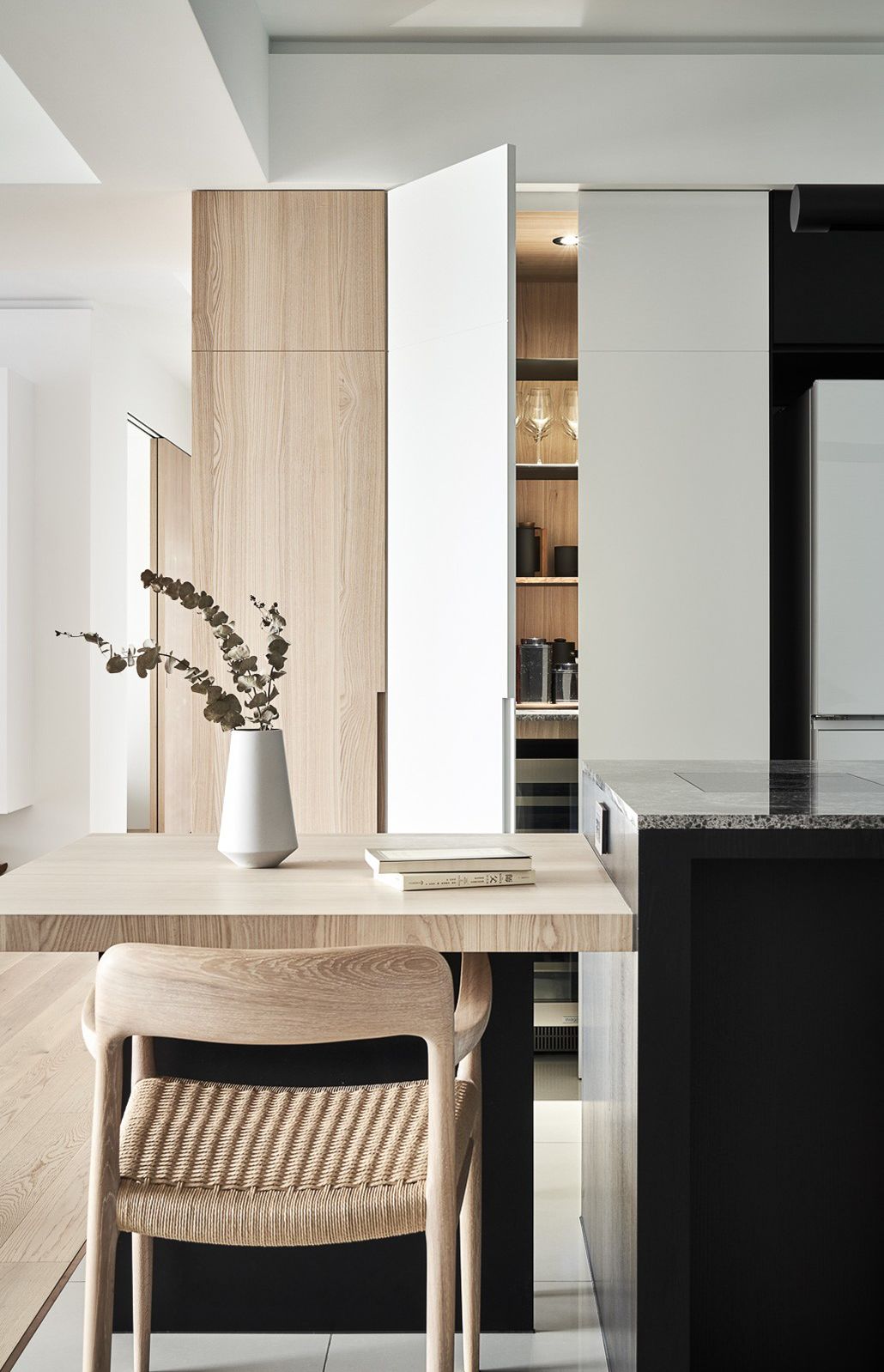 设计师把餐桌与中岛相结合,既时尚又实用,营造出更多空间的可能性,无论是家人聚餐、朋友派对,皆可以同时多人动手制作,为烹饪和家居生活带来更多趣味和舒适的体验。背靠阳光,享受美食,多么温馨。