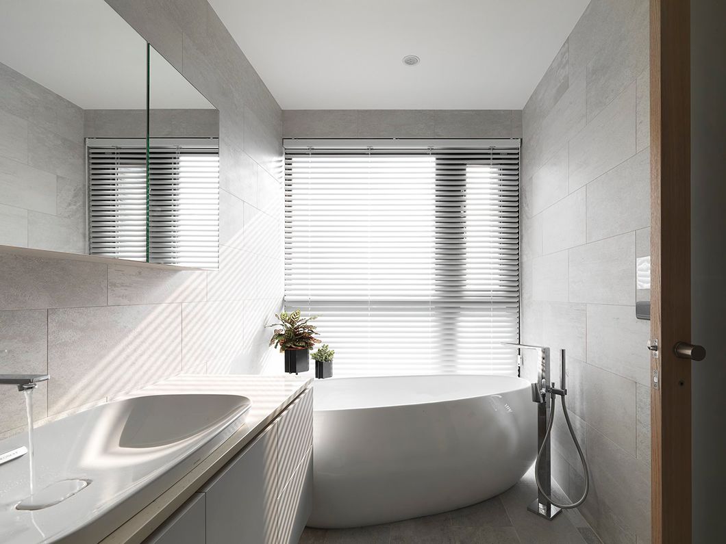 主卫采用浅灰色水泥纹的瓷砖铺贴,自然简洁的质感,搭配造型简单的白色卫浴,使整个空间显得更加干净明亮,不仅彰显了一种美好、自然的生活态度,还透露出主人享受生活的美好愿景。