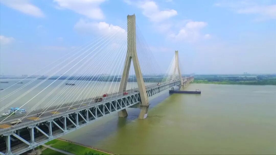 京广高铁天兴洲长江大桥始建于2003年,于2009年12月26日通车运营,实现了中国铁路桥梁跨度从300米级到500米级的跨越,荣获“乔治·理查德森大奖”。