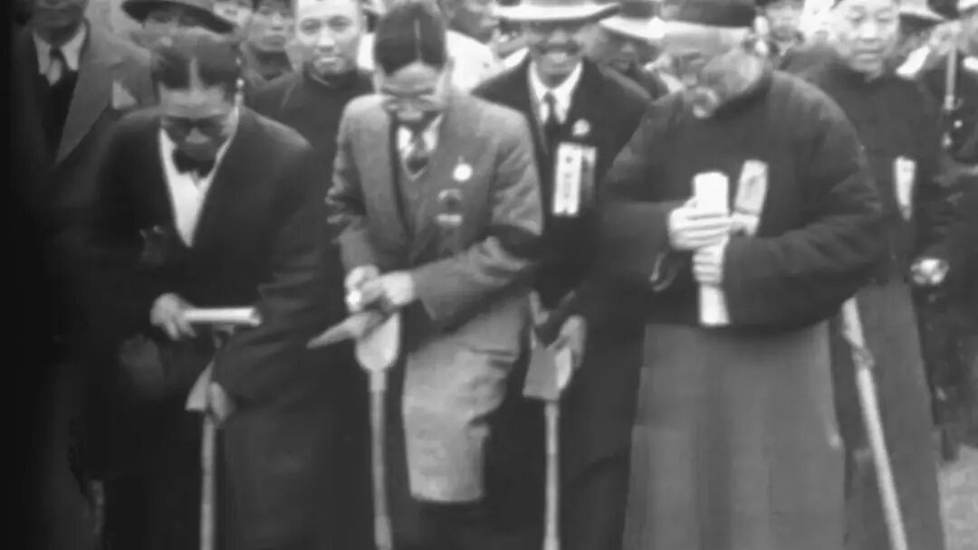 钱塘江大桥奠基仪式上的茅以升(前排中)