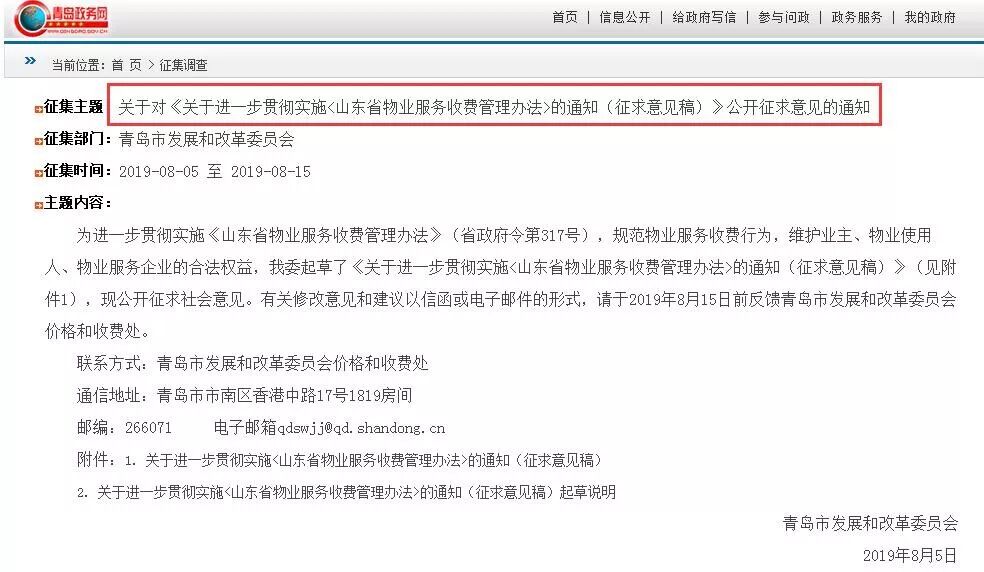 - 去年7月1日起, 《山东省物业服务收费管理办法》正式施行 近日,为进一步贯彻实施该管理办法 规范物业服务收费行为, 维护业主、物业使用人、物业服务企业的合法权益, 青岛市发改委起草了 《关于进一步贯彻