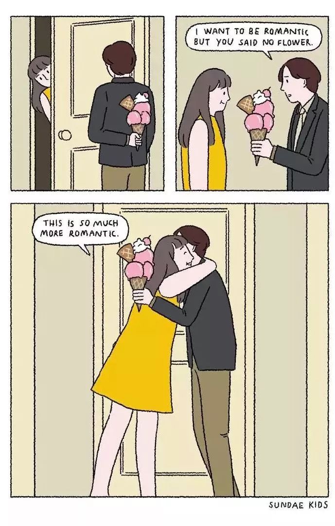 这虐狗的画风,听说单身的人看了,会忍不住想谈恋爱哦。干了这碗狗粮,让爱情来得更猛烈些吧~