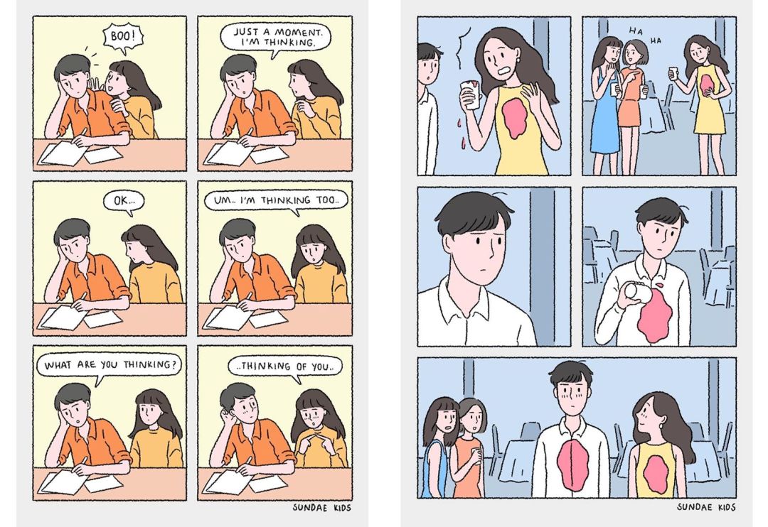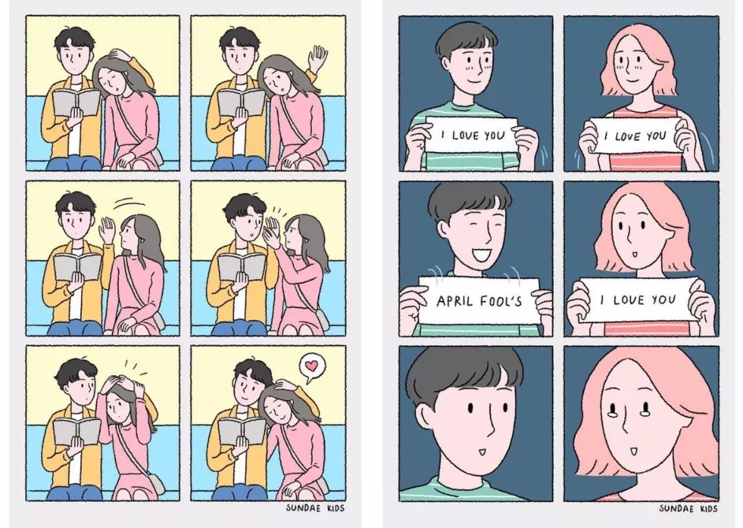- 又是一年七夕节 又到了撒狗粮的时间 今日份的狗粮来自韩国的插画家卢善京 她把自己和男友的相处日常 画成了一幅幅撩人的插画 隔着屏幕油菜都闻到了恋爱的甜蜜。 这虐狗的画风,听说单身的人看了,会忍