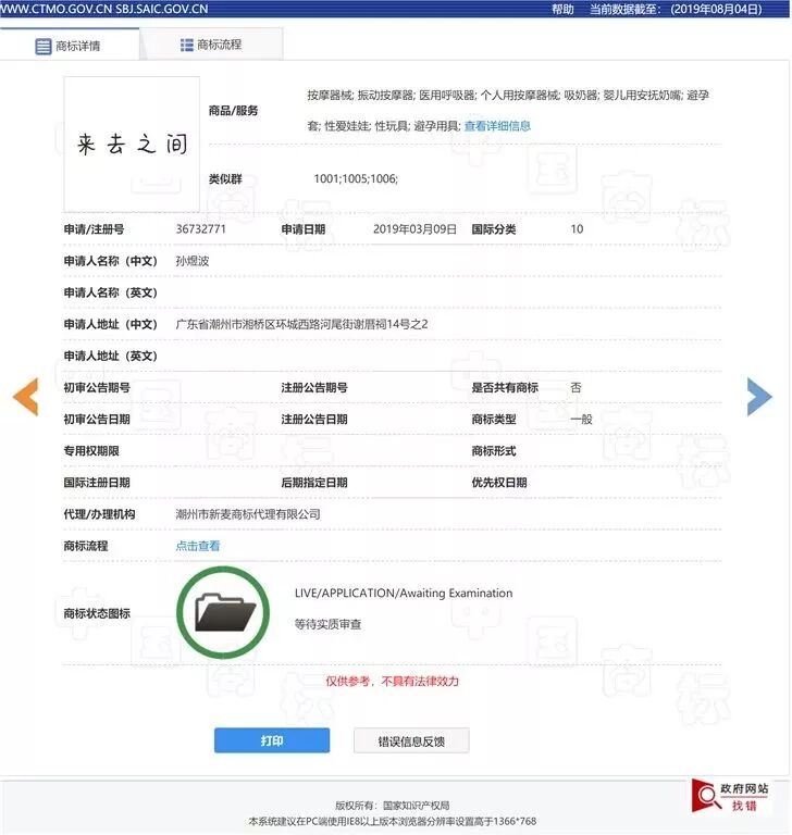甚至微博微博CEO@来去之间 也摊上了类似事件。有网友发现,微博CEO的个人微博账号昵称“来去之间”近期被抢注为了商标。用途涉及“按摩器械、振动按摩器、避孕套、性爱娃娃”以及“新鲜水果、新鲜蔬菜”等,申请时间为2019年3月份之前。
