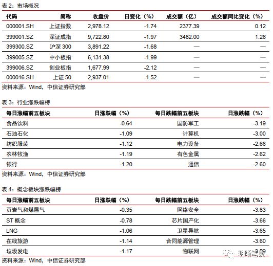 MLF续作“减量不减价”对宽松预期形成压制,叠加基本面利空较多,昨日“股债双杀”再现。央行昨日MLF缩量续作,且利率维持在3.3%不变,当日实现1450亿元流动性净回笼。再加上周一公布的8月经济数据表现不佳,猪油共振推升通胀的担忧加剧,市场情绪受到较大影响:股市方面,大盘全天单边走低,上证综指收跌1.74%;债市表现也不容乐观,国债期货全线收跌,国债、国开现券均有走弱。
