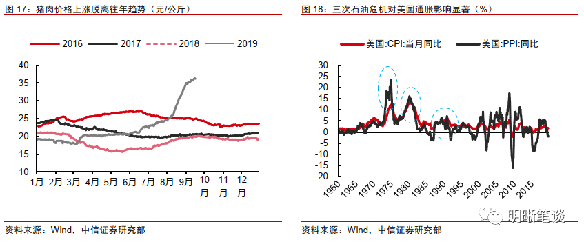 当前油价走势尚存较大不确定性,猪油共振言之尚早。总体而言,我们认为猪油共振中油价的影响可能是更值得关注的方面,但是究竟短期的事件冲击会对油价带来多大影响,类似的事件是否会不断发生,能否对石油供给造成持续的影响,这些问题目前看都存在很大的不确定性,油价未来的变动趋势仍然有待观察。