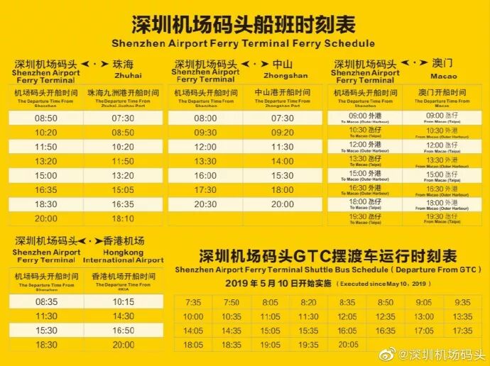 船班变更通知:鉴于天气情况逐渐转好,深圳机场码头以下船班恢复正常运行: