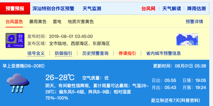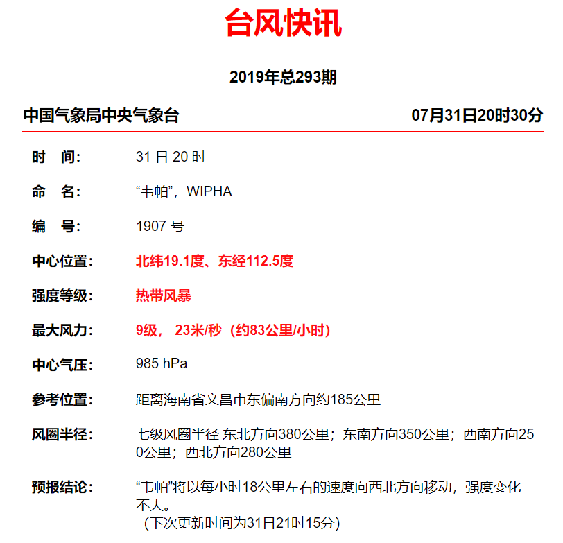 - 还记得上次的空调外机“丹娜丝”吗? 热带气旋外围的下沉气流 导致深圳“炎”值爆表 终于在昨天(31日)1点50分前后 降温台风"韦帕"在海南文昌沿海正式登陆 台风最新动向: 目前即将登陆雷州半岛
