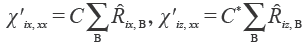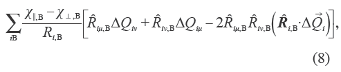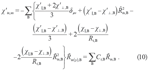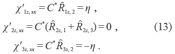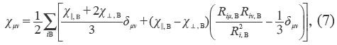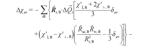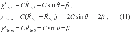 其中B用来标记极化键(连接原子i ), Ri, B 为连接i 原子及其相邻原子i′ 的键对应的矢量, Riμ, B 为该键的μ 分量,而Ri, B 为该键的长度, χ∥, B 和χ⊥, B 分别为该键沿着平行和垂直方向的极化率大小。由此可得拉曼张量表达式为
