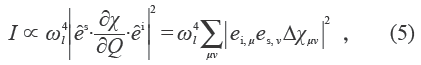 根据经典的键极化率模型[37],声子模的拉曼强度与极化率张量χ 有关:
