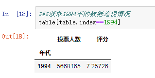 1994年被誉为电影史上伟大的一年,《低俗小说》《肖申克的救赎》《阿甘正传》等经典电影都出现在这一年,所以我们通过索引筛选1994年的电影评分,1994年的电影平均分在7.26分: