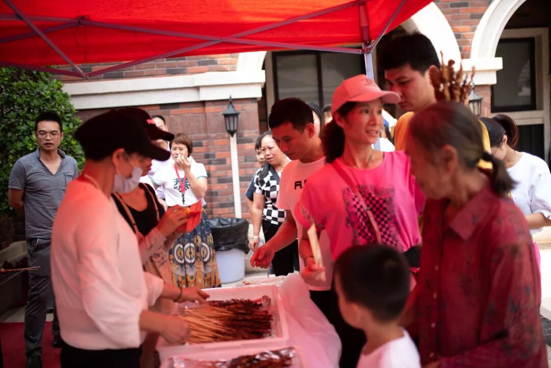 入水扑通声,烧烤“咝咝”声,业主的欢笑声