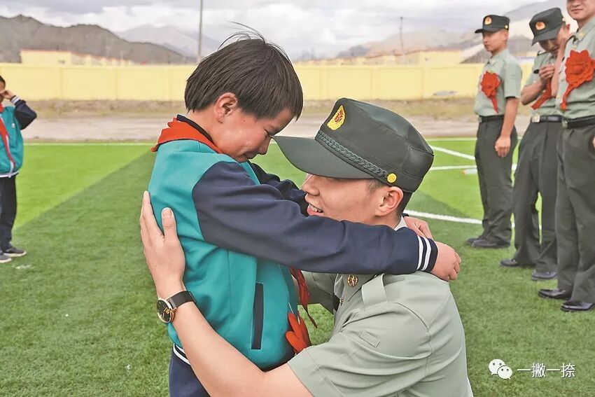 9月3日,新疆克孜勒苏军分区迈丹边防连即将退伍的9名老兵辅导员走进位于祖国最西端贫困地区的迈丹小学。老兵们分享自己的童年经历和参军生涯,鼓励孩子们好好学习,长大以后多为祖国做贡献。图为老兵王永强与学生依依不舍地告别。