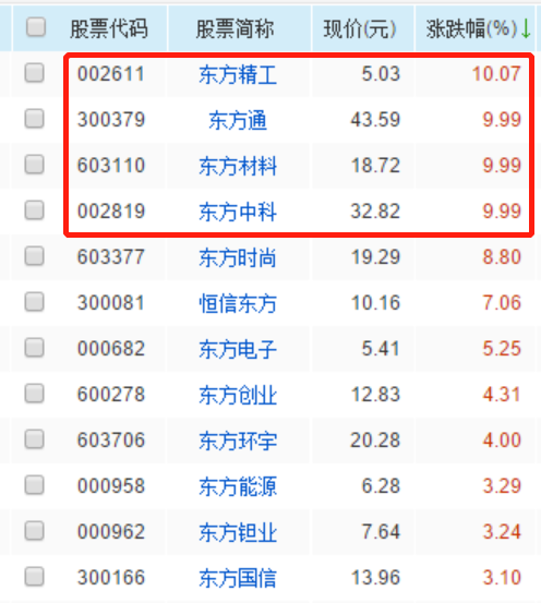 东方材料,2板,OLED+石墨烯+华为。东方系最新补涨个股,在“东方系”里虽然排行老三。