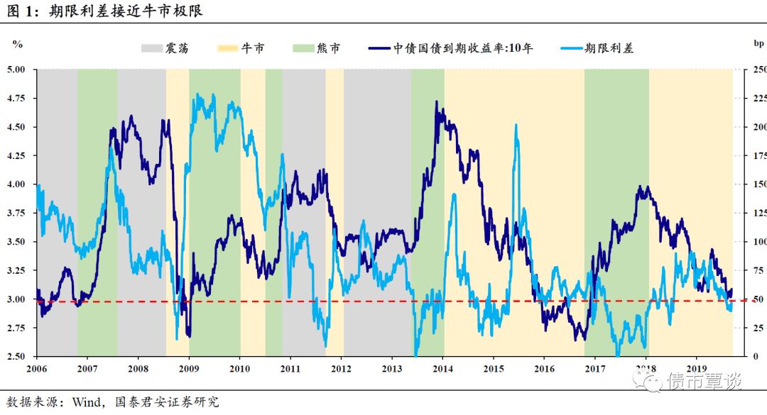另一方面,期限利差接近牛市的极限位置,公开市场操作利率的降息预期一再落空,短端利率下行突破乏力,市场自身酝酿了一定的调整压力。