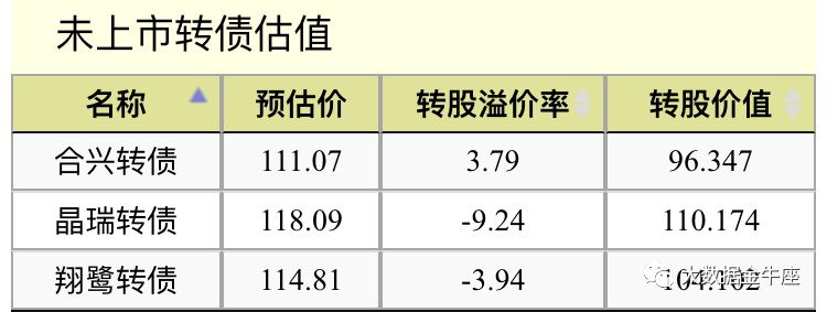 以现在未上市的三个转债为例,翔鹭和合兴,9月16日上市,目前预估翔鹭的价格较高,上市股价可能在114上下,而合兴转债的预估价在111附近。