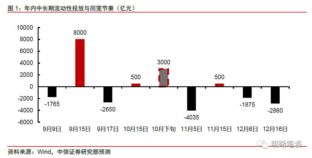 有一种观点认为,9月和11月到期的MLF总量为8450亿元,与本次全面降准+定向降准总共释放的9000亿元流动性相当,加之根据降准形成对银行资金成本减少150亿元的估算,认为本次降准后11月及之前的MLF到期都将不再续作,完成对降准释放资金的对冲。
