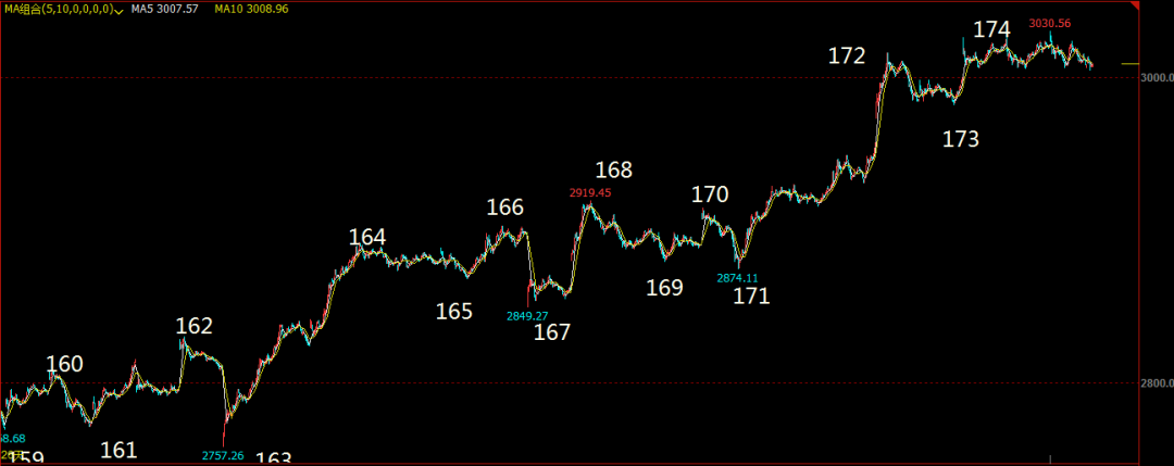 行情没完,现在是短线调整,重要的是看围绕3000点附近的中枢震荡,还是回落到2900附近的中枢,如果是到2900点附近的中枢,则将构筑日线笔中枢,参考今年3月份那个中枢。