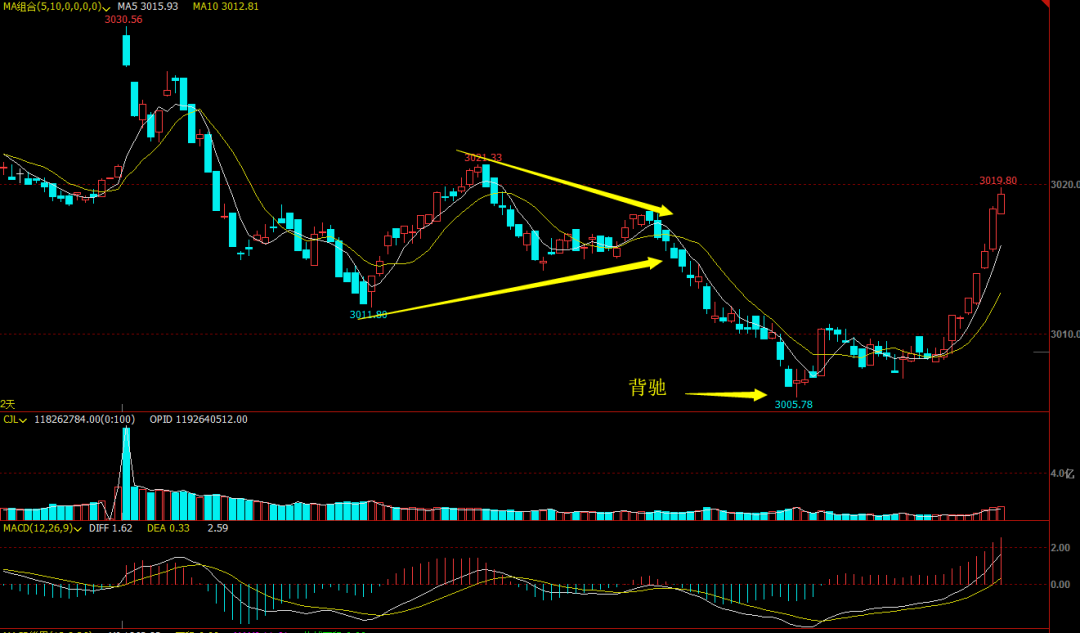 今天上午3005的低点是个明显的日内短差买点,1分图里是下跌+盘整+下跌,有小级别背驰配合